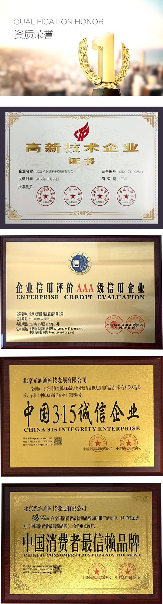 • 首頁 > 關于光潤通 > 公司介紹 > 榮譽資質