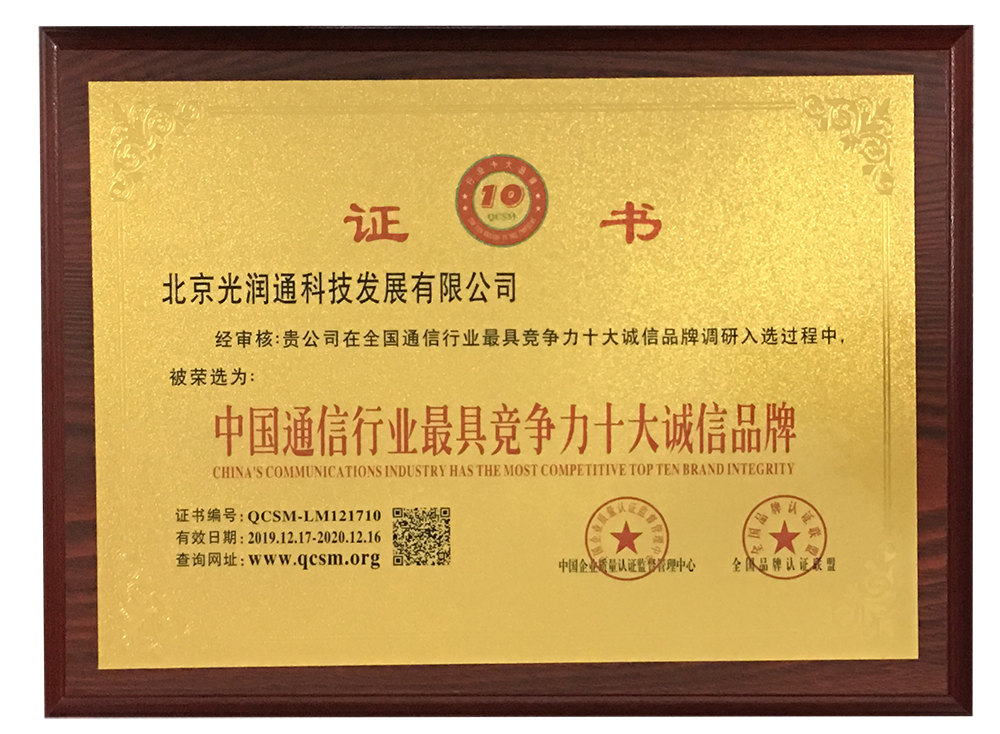 中國通信行業競爭力十大誠信品牌  查看