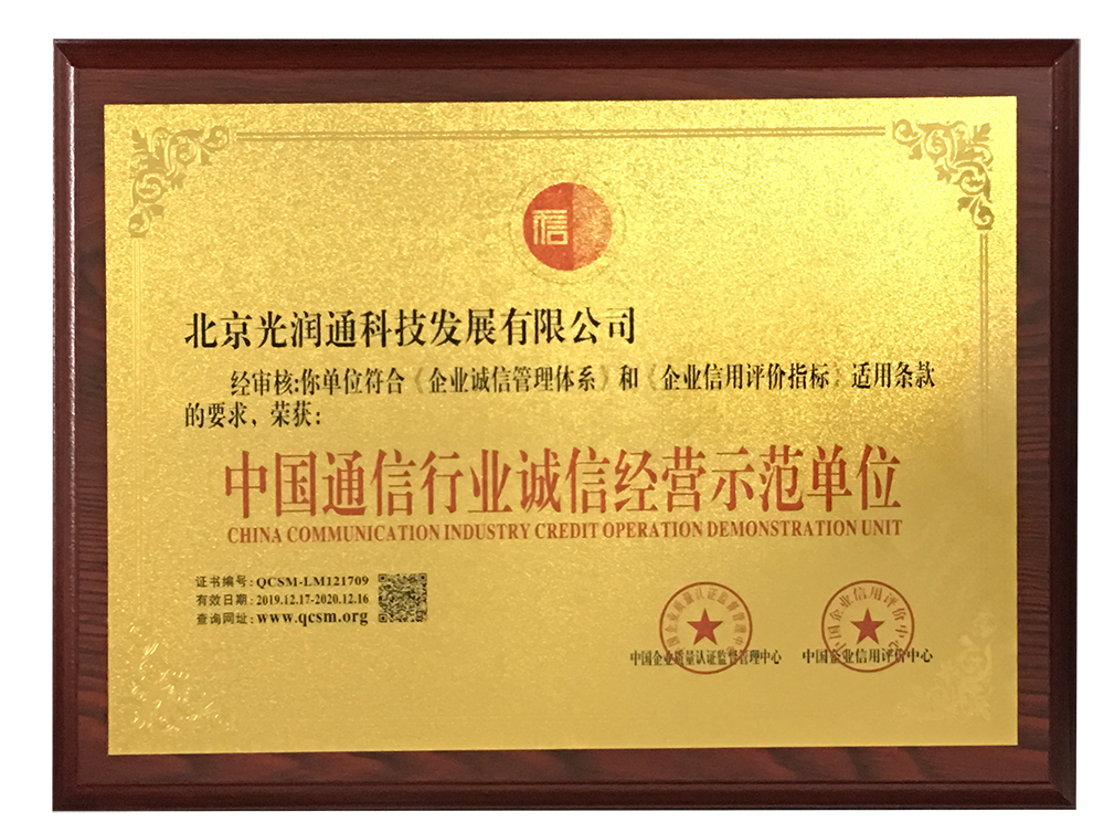 中國通信行業誠信經營示范單位  查看