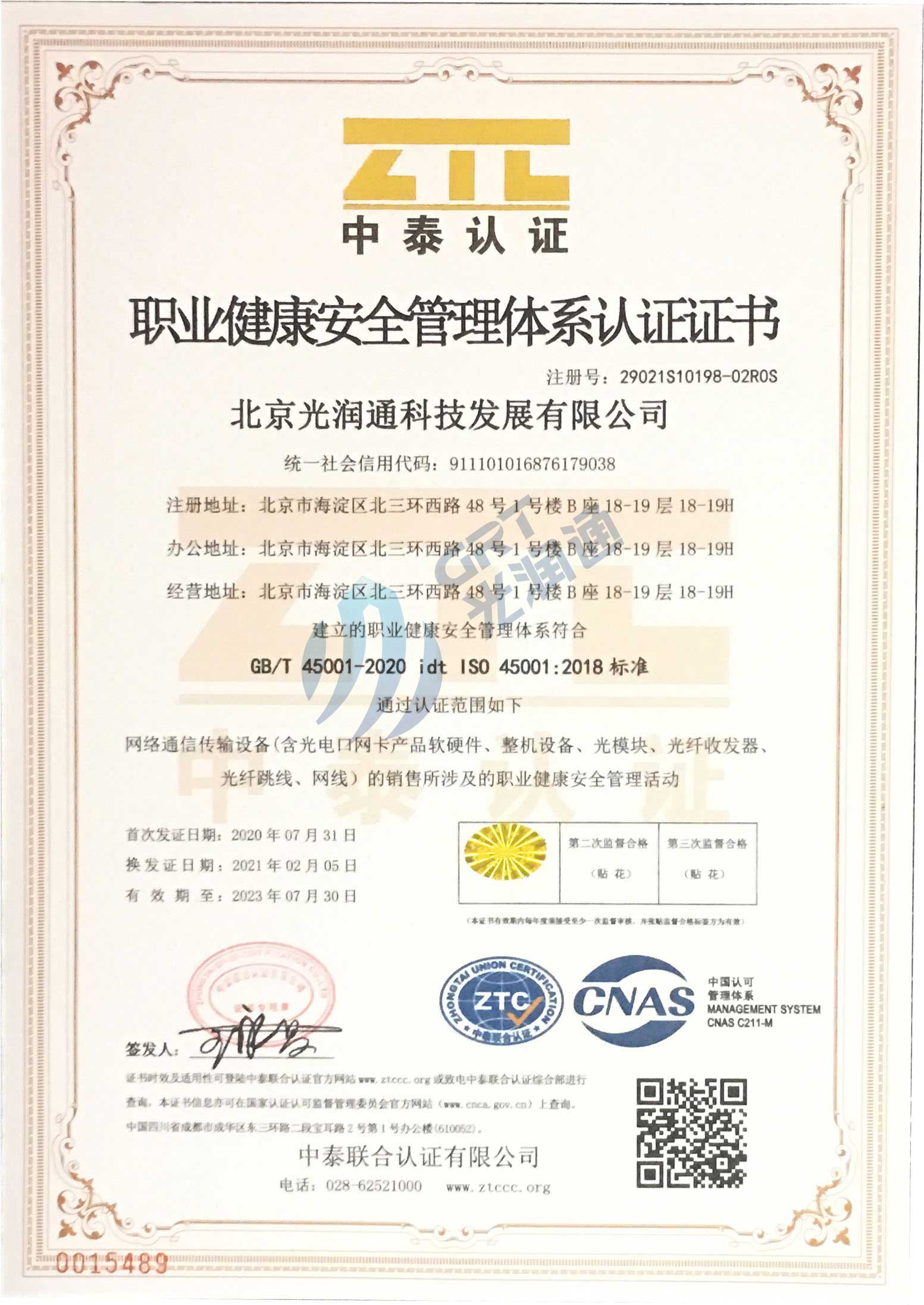 光潤通已通過ISO 45001認證。ISO 45001職業健康安全管理體系,是由OHSAS18001職業健康和安全管理體系演變而來。這一新標準用于幫助全世界的組織確保其工作者健康和安全。